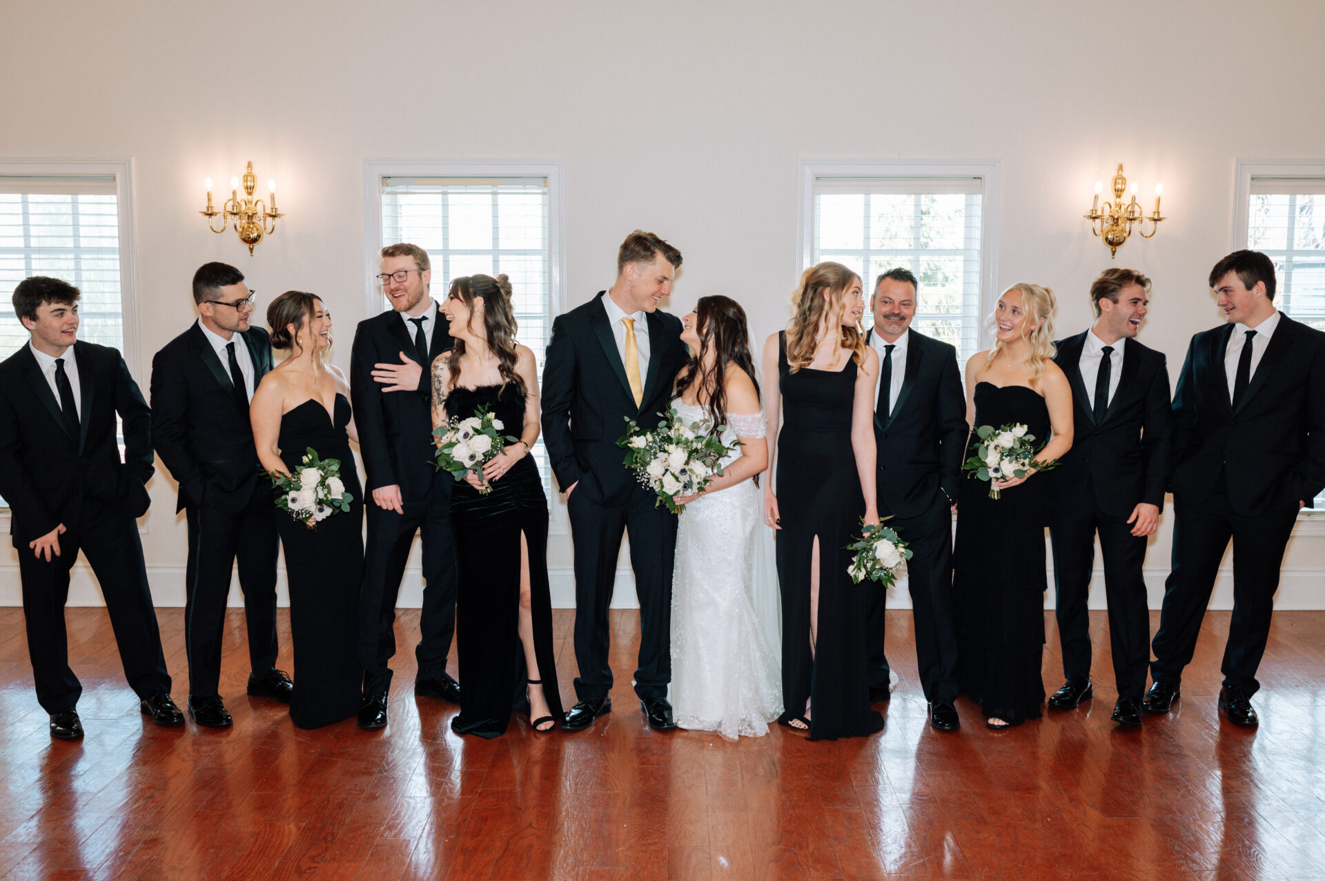 The chapel boasts an elegant dressing room for the bride, bachelor’s retreat for the groom, oak floors, white chiavari chairs and state of the art acoustics.