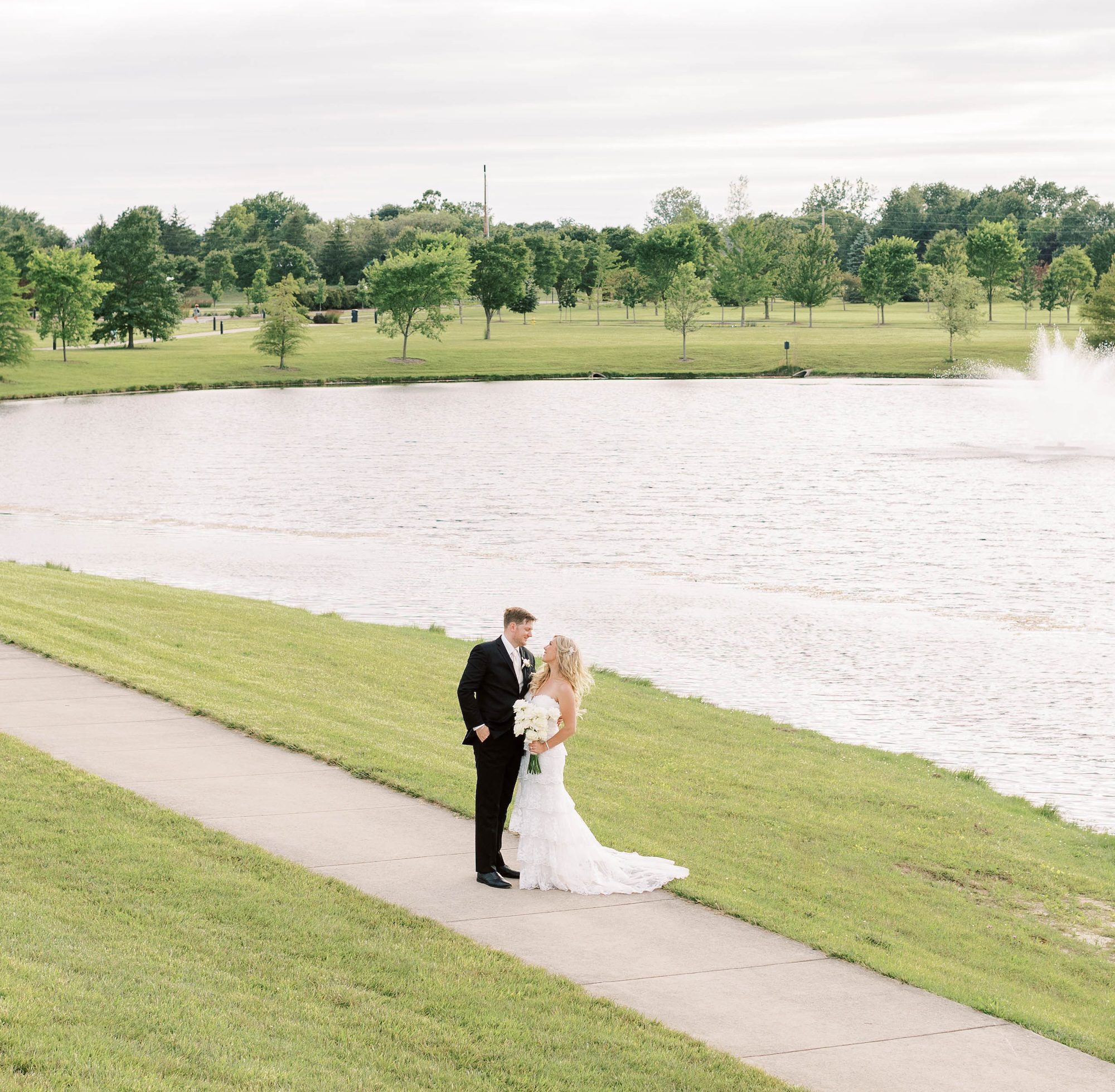 This modern, 125-acre park includes twin 90-feet bell towers, a recreation lake, and arched, limestone bridge. Various red brick and wrought iron features create endless pockets for wedding party portraits, first looks and private vows.