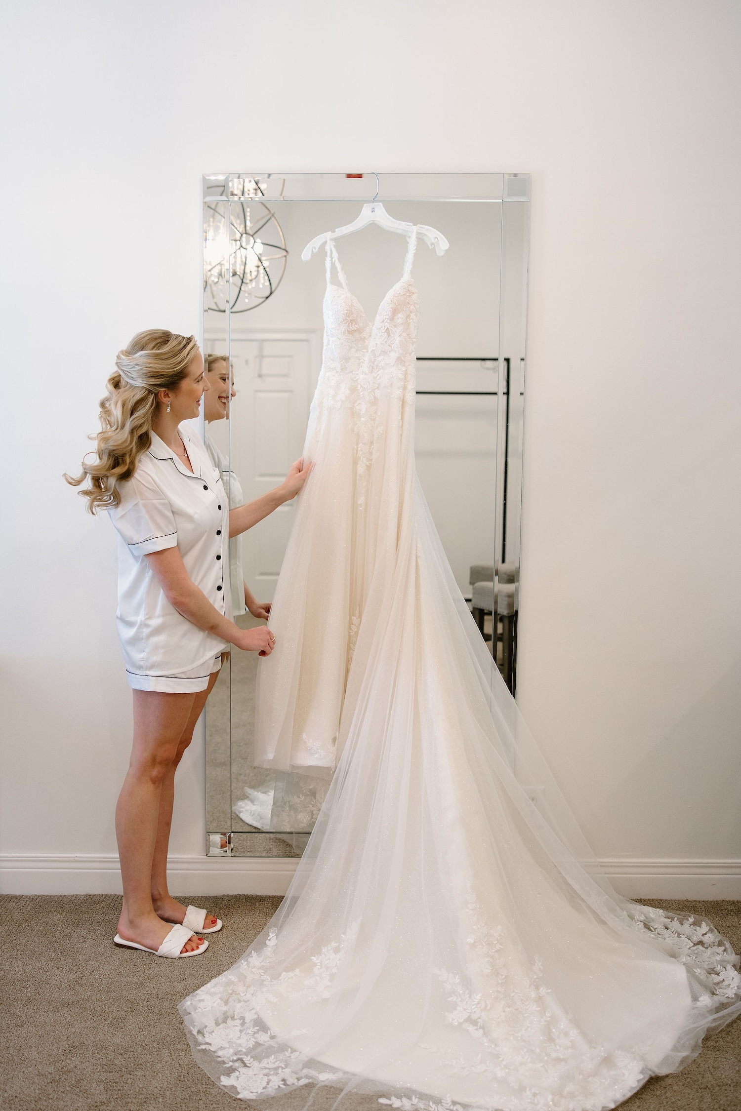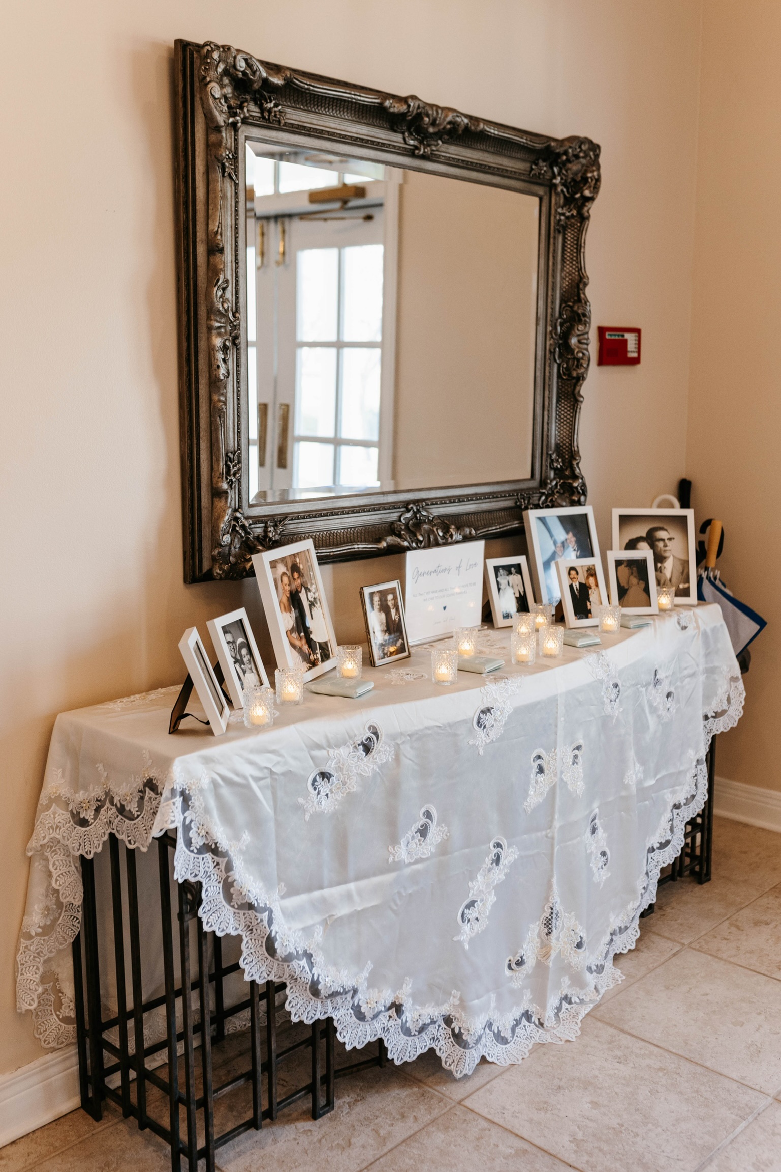 The bridal suite, conveniently located just off the foyer, provides easy access to the ceremony hall and aisle. The space features comfortable seating, full-length mirrors, and ample hangers for dresses and attire.