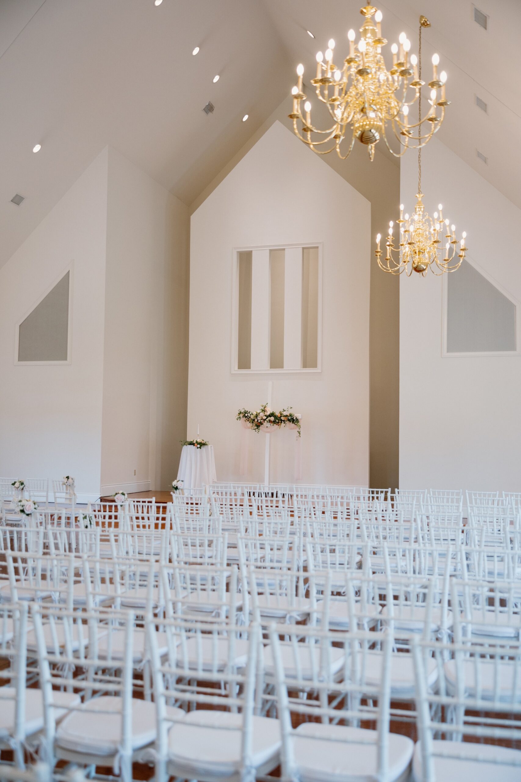 The Chapel brings ease and elegance to your wedding day. This climate-controlled space features a refined bridal dressing suite, a comfortable retreat for the groom, oak floors, white Chiavari chairs, and state-of-the-art acoustics. Its simple, sophisticated altar can be personalized to reflect your style or left beautifully understated. A dedicated Ritz Charles Ceremony Coordinator supports you throughout the planning process and on the day itself – from welcoming and seating guests to opening the doors as your ceremony begins. Being just steps away, the Garden Pavilion and Ballrooms reception spaces provide a seamless transition into your wedding celebration. Please note that the Chapel is available exclusively when paired with a Ritz Charles Ballroom or Garden Pavilion wedding reception.